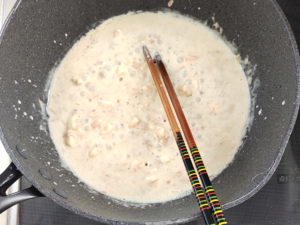 ![]() 5:クリームチーズがほぼ溶けたら、ソースの準備はOK。 |