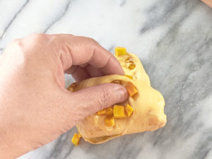 南瓜が生地からはみ出すことがありますが、焼けばちゃんと膨らむので大丈夫です。