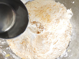 ![]() 7:ぬるま湯を加えて、手にくっつかなくなるまで捏ねましょう。 |