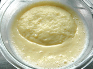 ![]() 7:再度レンジに入れ、1分加熱したら、同じように混ぜます。 8:同じ工程を2度ほど繰り返し、クリームにとろみが付いたら、カスタードの完成。 9:ラップをして冷蔵庫で冷やします。 |