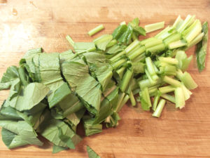 ![]() 7:小松菜は根元を落とし、食べやすい長さに切ります。 |