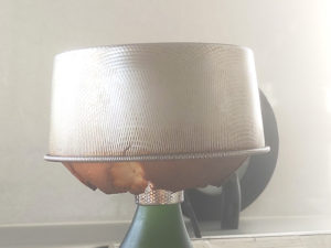 ![]() 9:ケーキが焼けたら、すぐに逆さにして、瓶などに挿し、このまま2時間以上放置します。 |