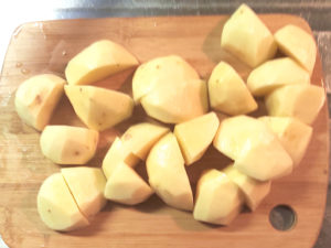 ![]() 1:じゃがいもは皮をむき、大きめの一口大に切ります。 |
