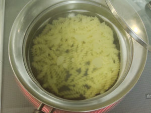 ![]() 2:鍋にお湯を沸かし、マカロニをパッケージの時間通りにゆでましょう。 |