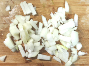![]() 5:玉ねぎは皮をむき、こちらも粗みじん切りにします。 |
