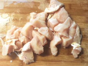 ![]() 1:鶏肉は少し大きめの一口大に切ります。 |
