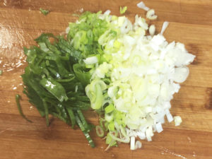 ![]() 7:ねぎはみじん切りにしておきます。 |