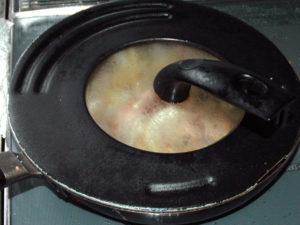 6:蓋を取り、強火で1~2分軽く水分を飛ばします。