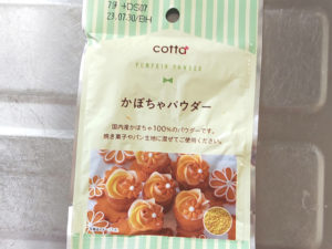 ![]() 7:かぼちゃパウダーを用意しておきます。 (今回はダイソーのを準備しました。) |