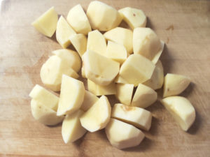 ![]() 1:じゃがいもは皮をむいて一口大に切ります。 2:耐熱皿にじゃがいもを乗せ、ラップをふんわりかけて、レンジで6~8分加熱しましょう。 |