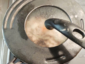 ![]() 5:火を弱火にしたら、蓋をして、3分ほど蒸し焼きにします。 (人参に早く火が通ります。) |