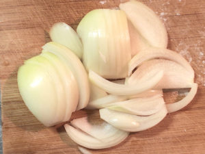 ![]() 3:玉ねぎは皮をむき、薄切りにします。 |