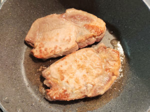 ![]() 4:テフロン加工のフライパンに、薄く油(分量外)を引き、まず両面2分ずつ焼いて焼き色を付けましょう。 |
