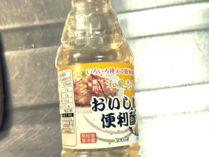 ![]() 7:今回は、100均のおいしい便利酢を使いました。 (なければ、寿司酢やカンタン酢などでも) |