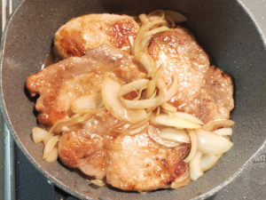 ![]() 6:肉を一旦取り出し、残った油で玉ねぎが半透明になるまで炒めましょう。 |