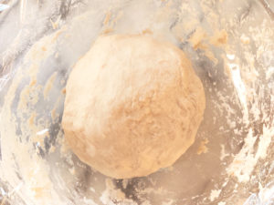 5:ボールに生地を戻し入れ、ラップをかけて、35度のオーブンで1時間発酵させます。