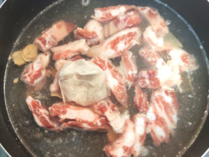 ![]() 2:鍋に豚パイカとお茶パックで包んだ米(分量外)を火にかけ、再度沸騰させましょう。 |