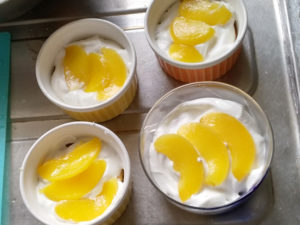 11:その上から、クリームを乗せ、更に上に黄桃を飾ります。