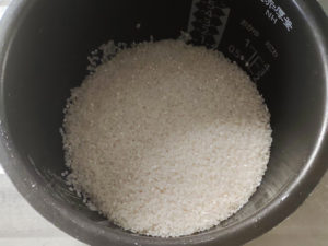 ![]() 1:無洗米を炊飯器にセットします。 (無洗米なのでとぐ必要はありません。) |