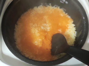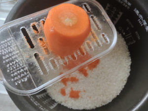 ![]() 4:炊飯器の無洗米モードか、普通に炊飯で炊きましょう。 (早炊きモードは使わないでください。) 5:炊けたら、人参が全体に散るように混ぜ合わせ、蓋をしたままで5分ほど蒸らせばOKです。 |