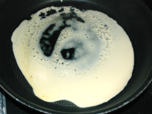 ![]() ②フライパンにバターを溶かしましょう。 (マーガリンでも大丈夫です。) |