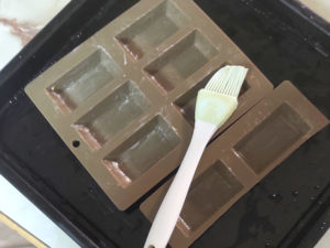 ![]() 14:しっかりと冷めたフィナンシェに、シロップを1つずつ刷毛で塗り、味がなじむまで5分ほど冷蔵庫に入れます。 |