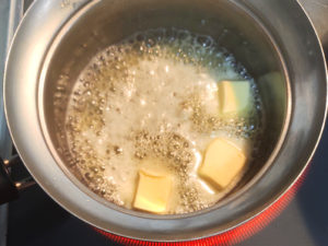 ![]() 4:小鍋にバターを加えて弱火にかけ、焦がしバターを作りましょう。 5:絶えず弱火で混ぜながら加熱し、薄茶色になったら火からおろします。 |