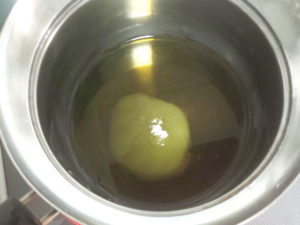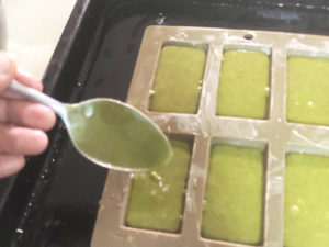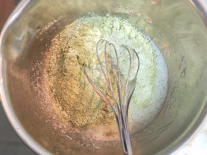 ![]() 13:小鍋に水、シロップ用砂糖、グリーンティーリキュールを入れて火にかけ、砂糖を完全に溶かしましょう。 (アルコール分も一緒に飛ばしてください。) |