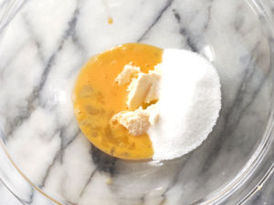 ![]() 1:耐熱ボールに、クッキー生地のマーガリンを入れ、レンジで10~15秒加熱して柔らかくしておきます。 2:クッキー生地の砂糖と卵を入れて、白っぽくなるまでよく混ぜましょう。 |
