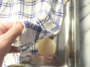 ![]() 15:台の上に丸めた生地を乗せ、固く絞った布巾をかけたら、10分ほど休ませます。 (ベンチタイム) |