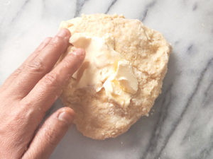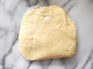 ![]() 5:クッキー生地を平らな長方形にしたら、ラップで包み、1時間ほど冷蔵庫で寝かせます。 |