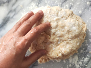 ![]() 3:台の上に強力粉(分量外)を振り、生地を10分間捏ねて、表面が滑らかになればOK。 |